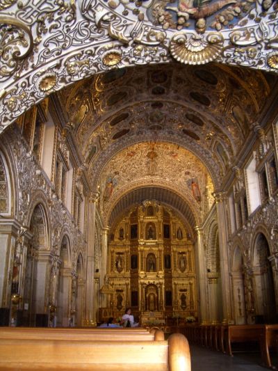 Templo de San Francisco is beautifull decorated with blue, green and yellow Talvera tiles