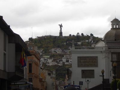 The small hill to the south of the old town is called "El Panecillo" and is a major Quito landmark. It is topped by a huge statue of "La Virgen de Quito".