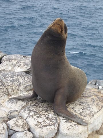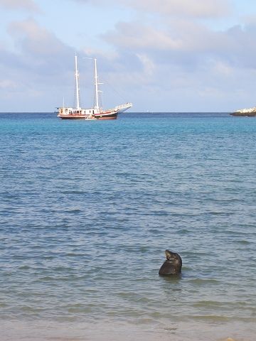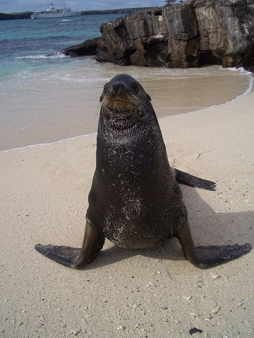 A good picture of our boat and a Sea lion bull.