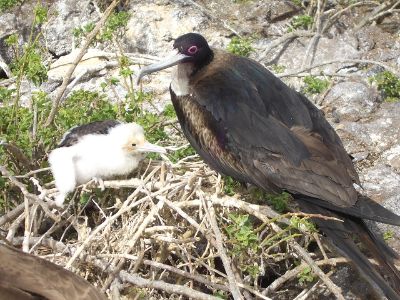 A Fregate bird mama with her chick.