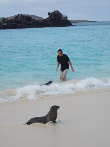 Ralf plays with a sea lion pup