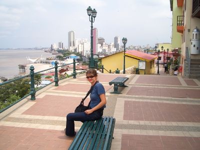 Visiting the hill of Las Penas with a nice view on the Malecon 2000, Guayaquil's waterfront promenade.