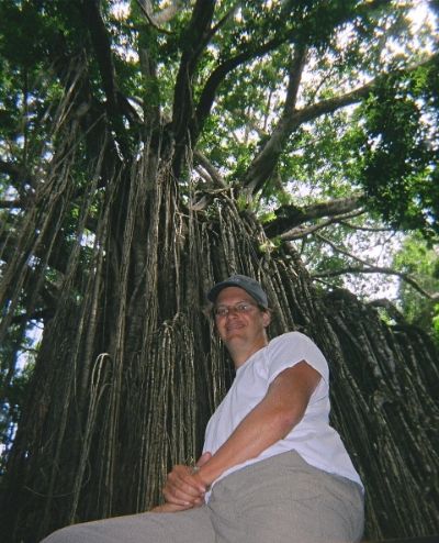 Ralf in front of a magnificant curtain fig tree.